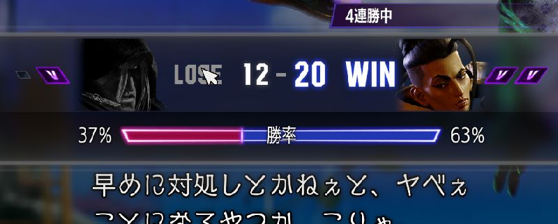 ちゃんと相手のやりたいことを阻害できている。この更に上の行動をされた場合は私が捌けないので死ぬが、今の断面でそこは問題ない。