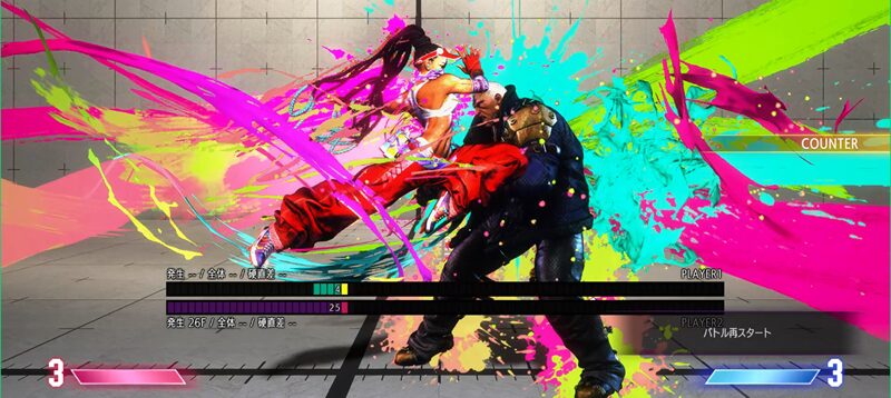 CPU相手なんで勝ち負けは一旦いいとして、内容がよろしくない。ラッシュで触られたあとでボタン押してるところが悪くて、相手が入れ込んでる連携の途中から食らって、端。端のしのぎ方はスト6買ってから2年経った今でも全くわかって…