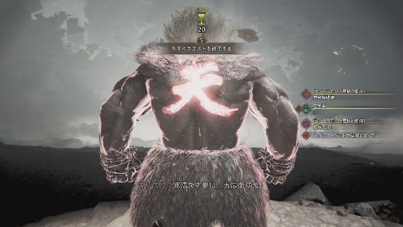 スト6勢ということもあって、豪鬼コラボはわりと好意的にうけとめておるわけ。 操作の感覚も楽しいので、強化もして珠詰めてモンスター殴りに行ったりもしている。 単純に楽しい。 ほんで、どうも世の人は闘技クエストの一個目(覚悟…