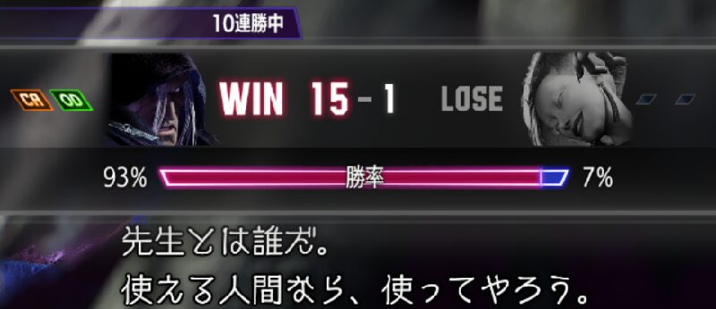 〇〇への目の付け所ができたら対戦の概観が変わるんだよな―、って点がいくつかある。オート差し返しとか、相手のオート差し返しを咎める技術とか。 実例一個あげるとすると、おなじみ中迅雷風鎌派生。これを遠めでスカらせて咎めるとか…