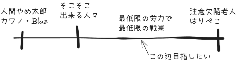問題としては途中で飽きるので、そのときにこの地点に戻ってこれるような施策が必要だ。
